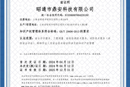 2003年11月10日,昭通市鼎安科技有限公司成立,初始主要從事第三方安全工程技術(shù)服務(wù),經(jīng)多年運營,發(fā)展為多專業(yè)綜合科技平臺,為社會提供多種專業(yè)技術(shù)服務(wù)工作。 現(xiàn)公司注冊資金為1200萬元,公司法定代表人:毛衛(wèi)旭。公司主要業(yè)務(wù):安全評價、安全標(biāo)準(zhǔn)化評審、安全工程技術(shù)服務(wù);環(huán)境監(jiān)測、職業(yè)衛(wèi)生檢測、檢驗;法律訴訟及非訴訟服務(wù);司法鑒定、固定資產(chǎn)投資項目節(jié)能服務(wù);工程咨詢;工程測量測繪;安全教育培訓(xùn)等。是安全生產(chǎn)服務(wù)、安全教育培訓(xùn)機構(gòu),也是環(huán)境監(jiān)測和職業(yè)衛(wèi)生服務(wù)機構(gòu),同時也是綜合的檢測檢驗、綜合科技平臺服務(wù)機構(gòu)。多年來為公、檢、法、司、軍、警、海關(guān)、仲裁、安監(jiān)、工礦商貿(mào)企業(yè)、社會團(tuán)體及個人提供多專業(yè)技術(shù)服務(wù)。